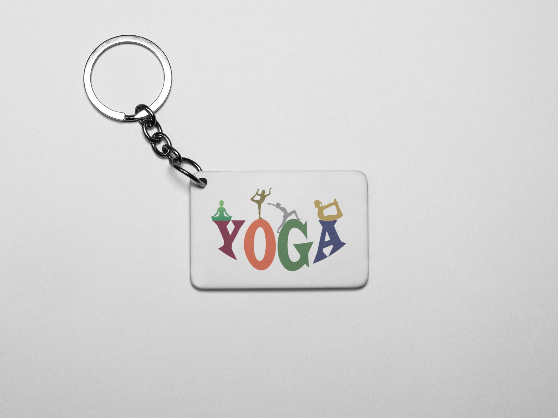 Yoga Text In Colourfull - Printed Acrylic Keychains(Pack Of 2)