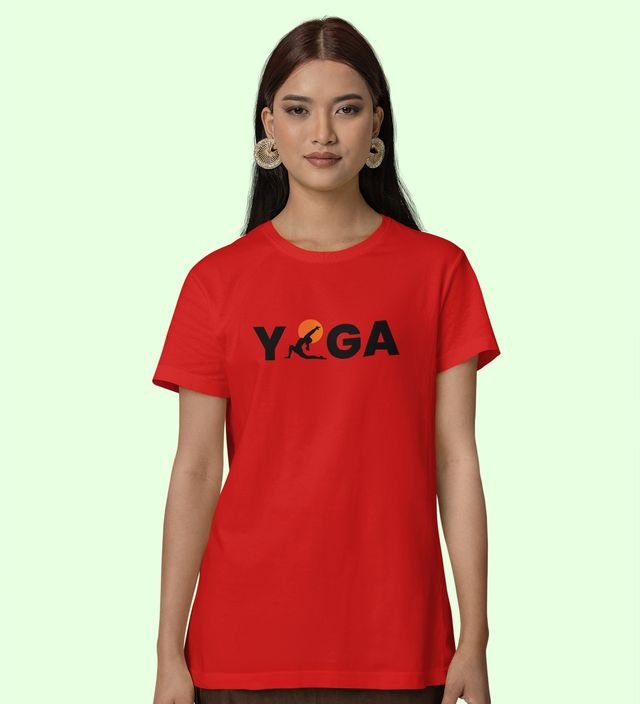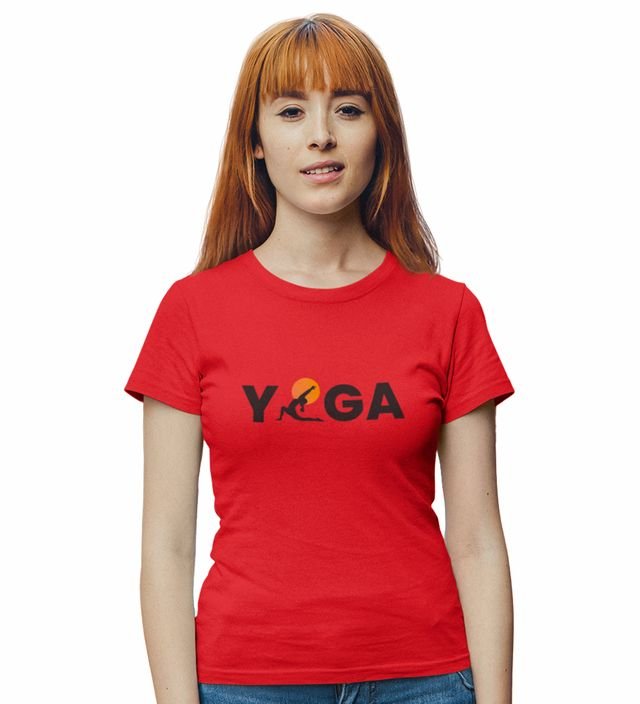 Yoga : The Strongest Path Red Round Neck Cotton Half Sleeved Women T-Shirt with Printed Graphics