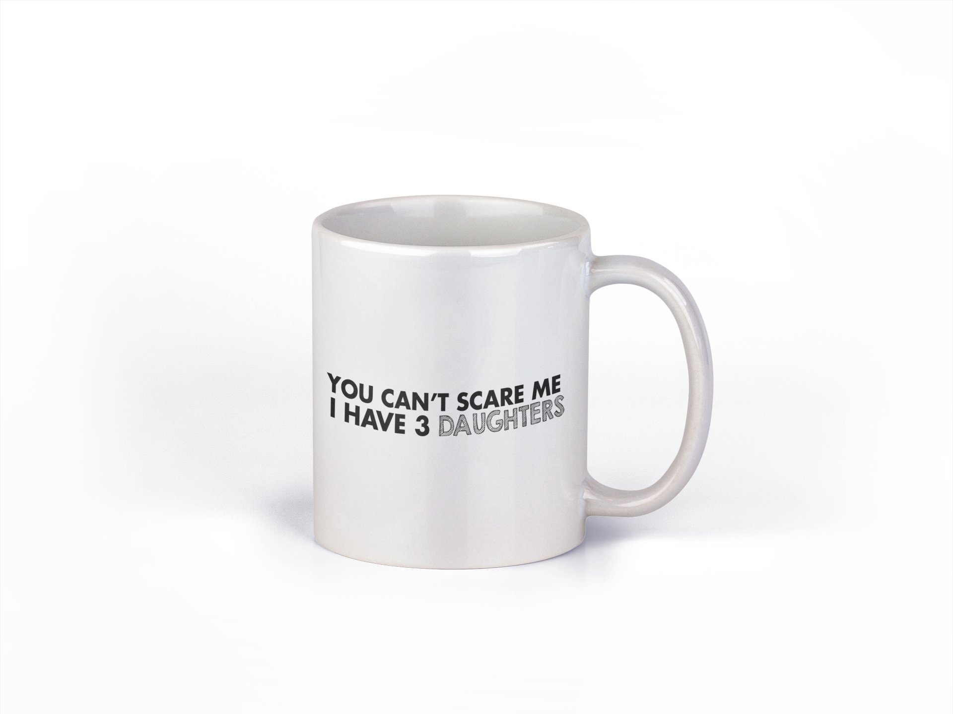 You Can't scare me I have 3 Daughters - family themed printed ceramic white coffee and tea mugs/ cups