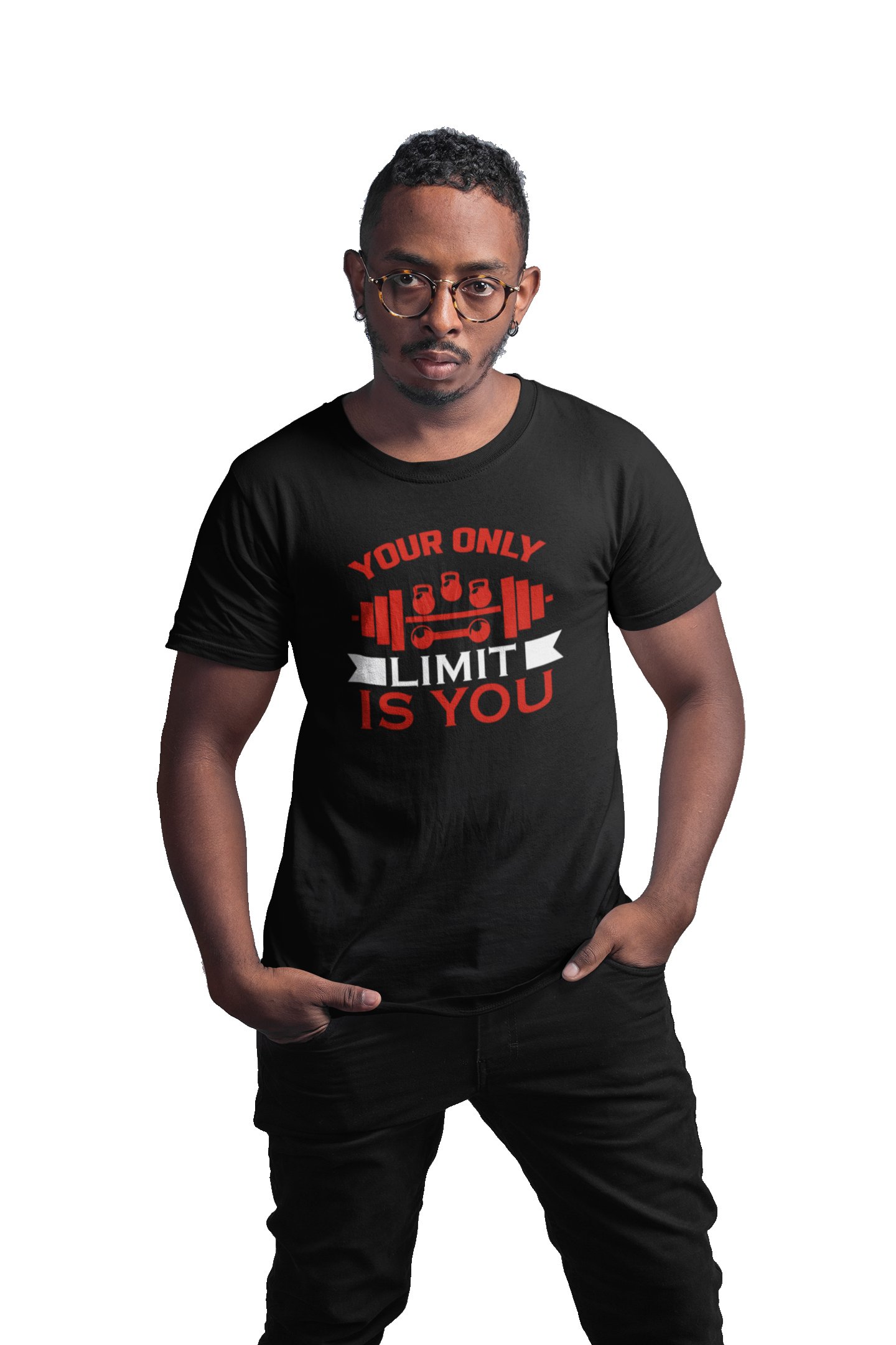 Your Only Limit Is You, Round Neck Gym Tshirt (White Tshirt) - Clothes for Gym Lovers - Suitable for Gym Going Person - Foremost Gifting Material for Your Friends and Close Ones