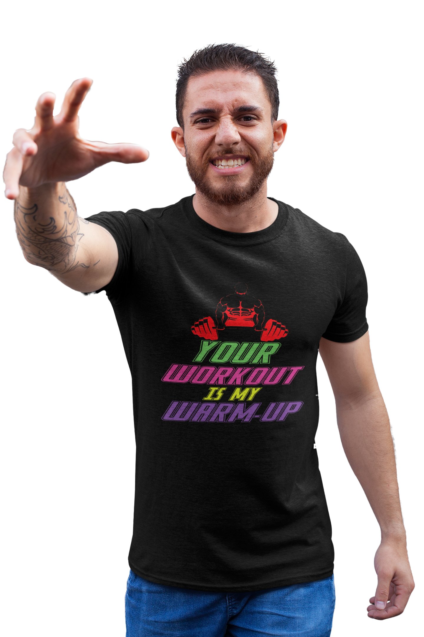 Your Workout Is My Warm-Up, Round Neck Gym Tshirt (Black Tshirt) - Clothes for Gym Lovers - Suitable for Gym Going Person - Foremost Gifting Material for Your Friends and Close Ones