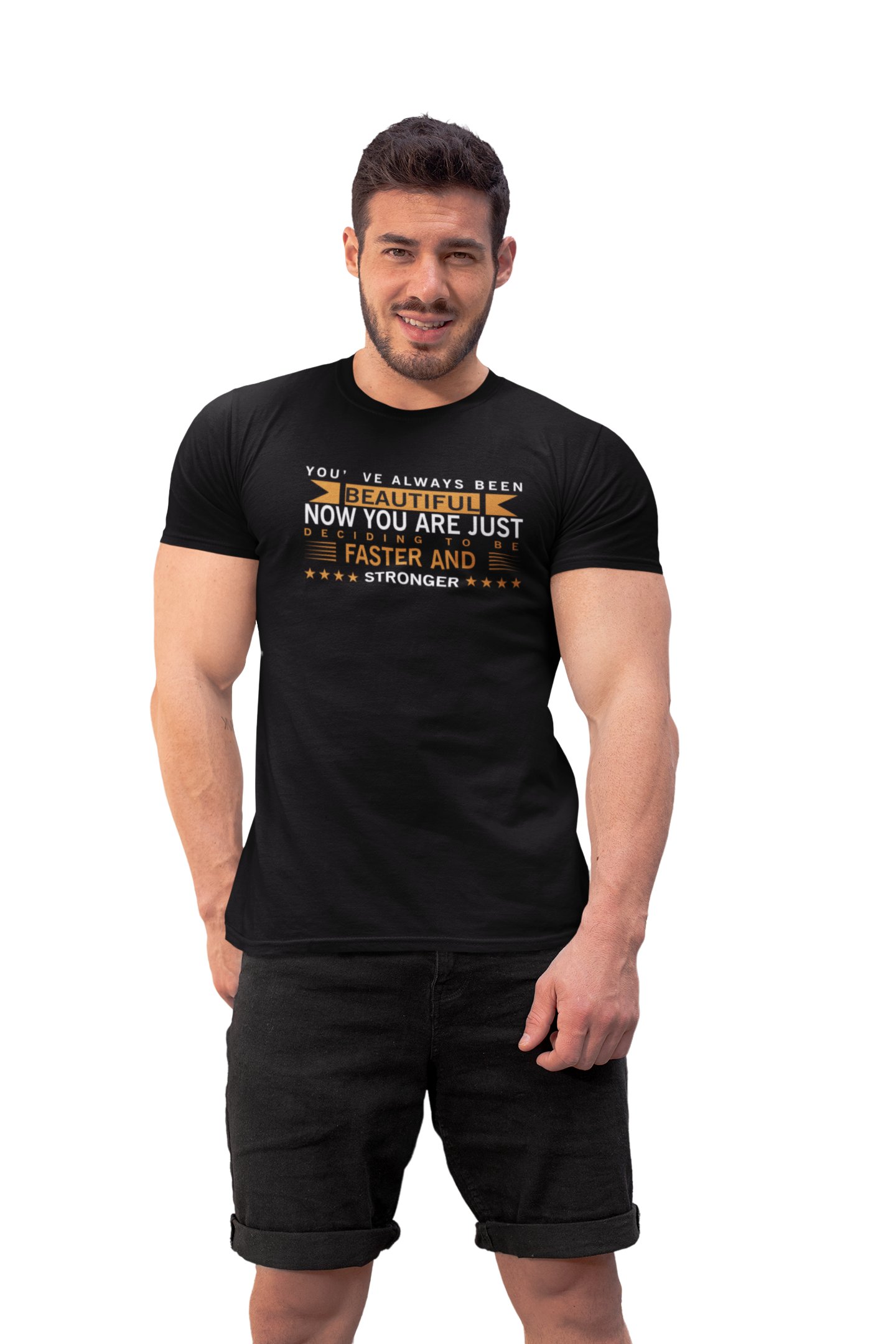 You've Always Been Beautiful, (BG Orange and White), Round Neck Gym Tshirt (Black Tshirt) - Clothes for Gym Lovers - Suitable for Gym Going Person - Foremost Gifting Material for Your Friends and Close Ones