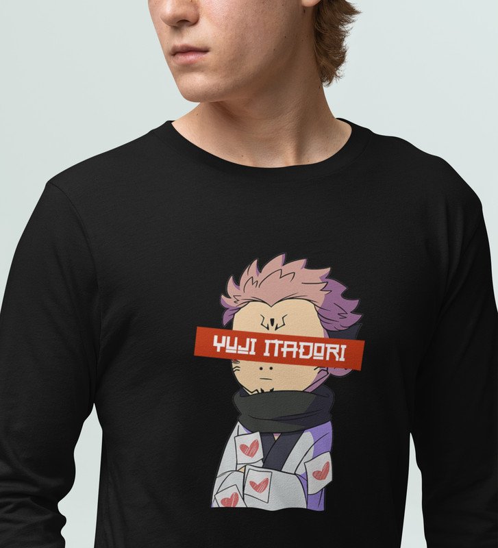Yuji Itadori Printed Cotton Black Full Sleeves Tshirt For Mens and Boys