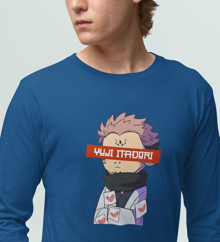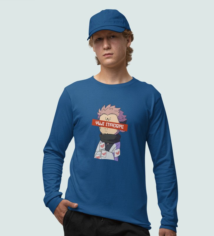 Yuji Itadori Printed Cotton Blue Full Sleeves Tshirt For Mens and Boys