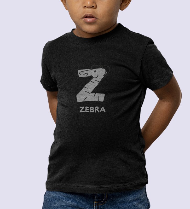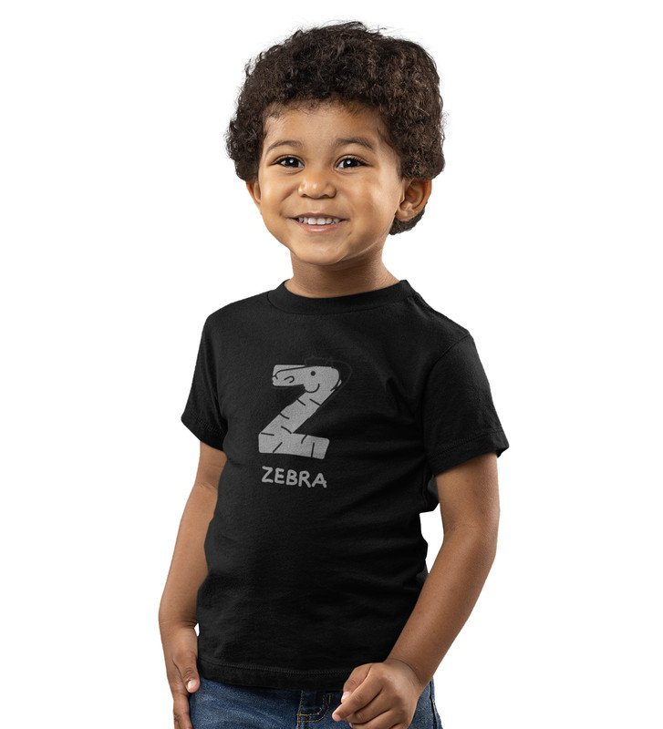 Zigzag Zebra,Boys Round Neck Printed Blended Cotton Tshirt (Black)