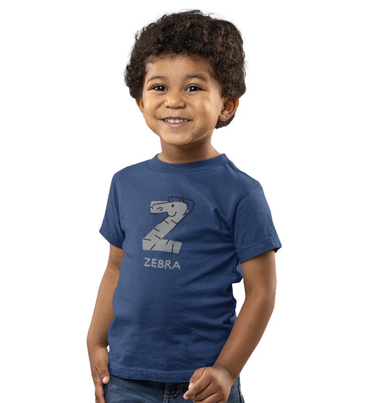Zigzag Zebra,Boys Round Neck Printed Blended Cotton Tshirt (Navy blue)