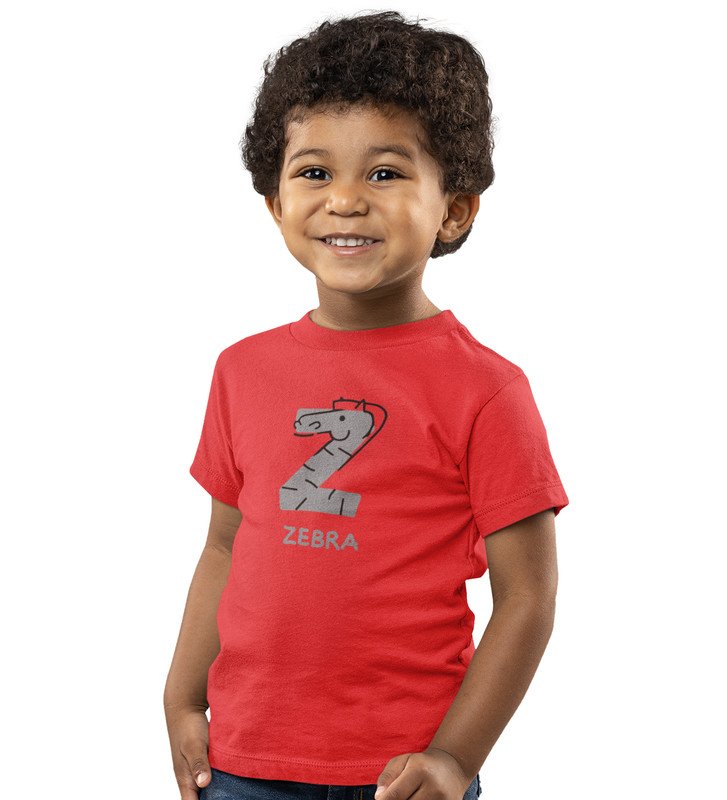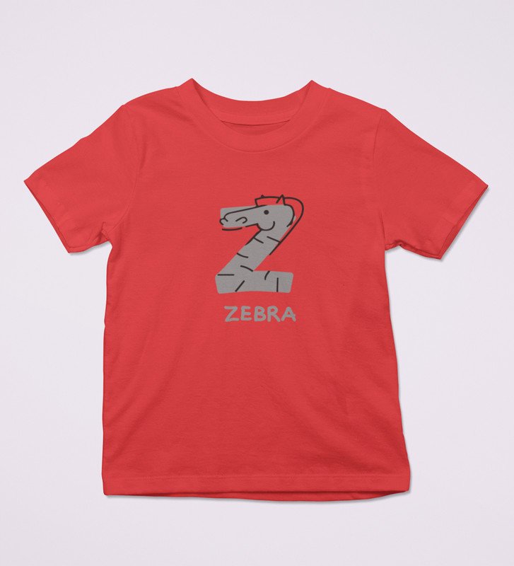Zigzag Zebra,Boys Round Neck Printed Blended Cotton Tshirt (Red)