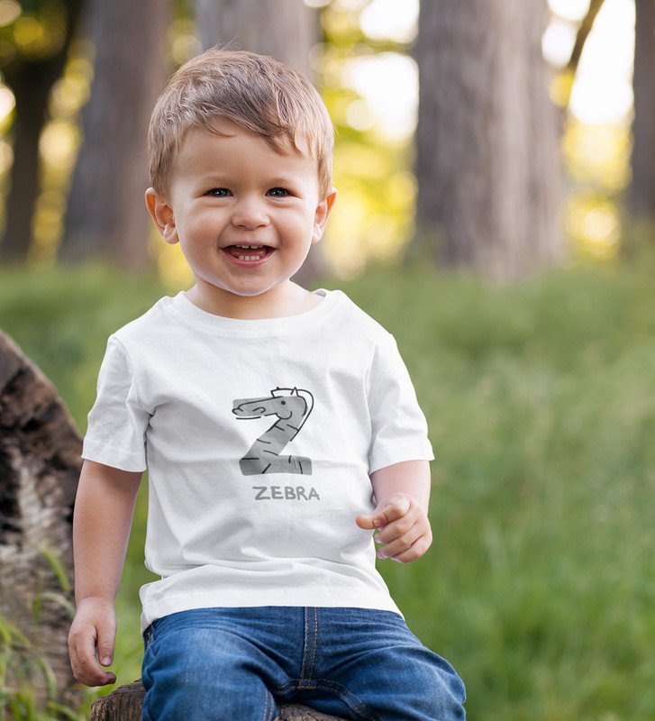 Zigzag Zebra,Boys Round Neck Printed Blended Cotton tshirt (white)