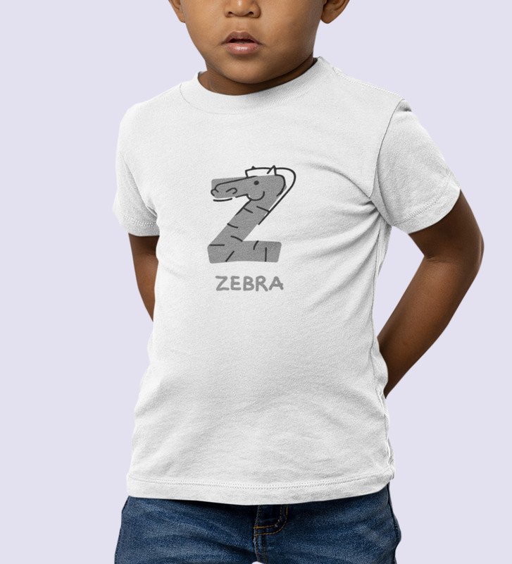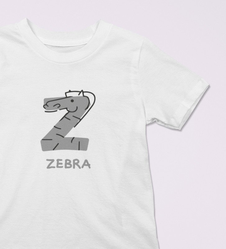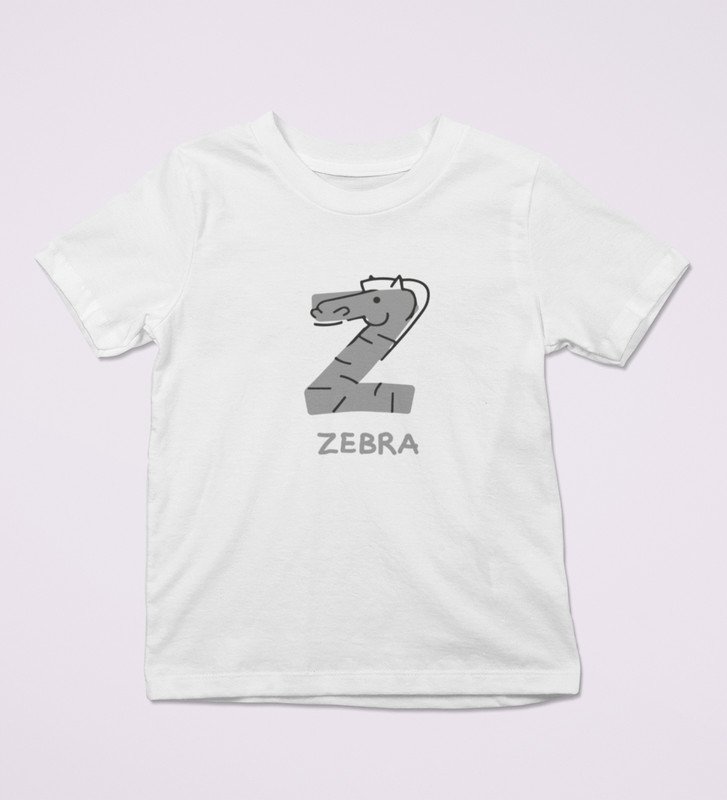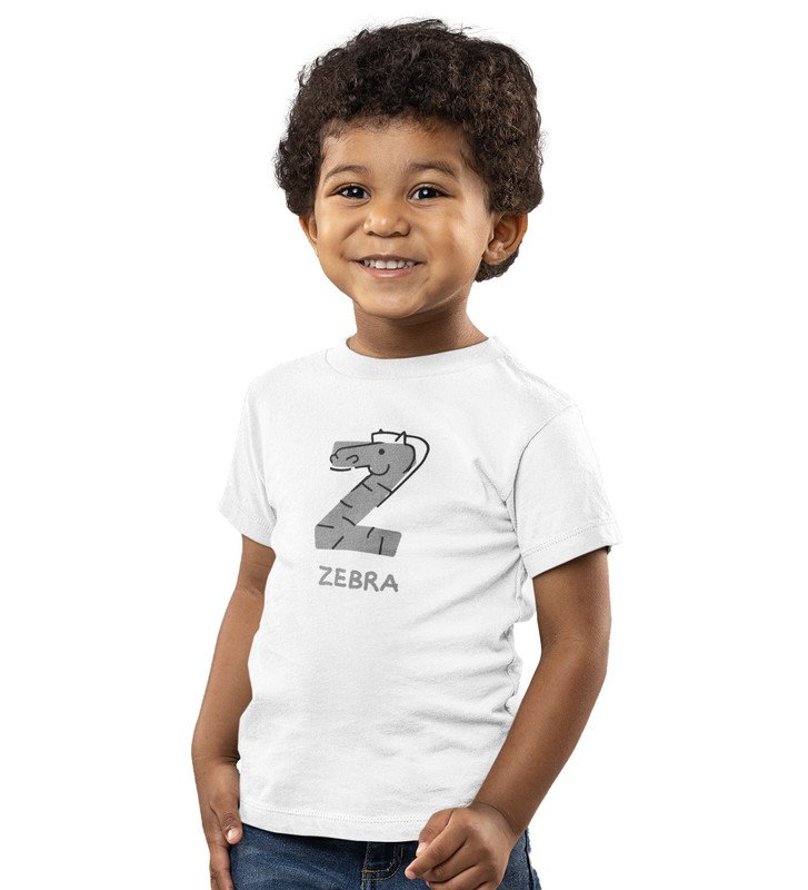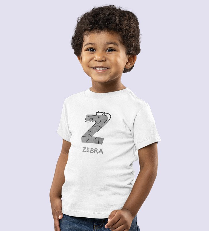 Zigzag Zebra,Boys Round Neck Printed Blended Cotton Tshirt (White)